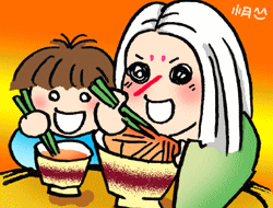 吃《ラーメン》(=麵條)的小釵^^
